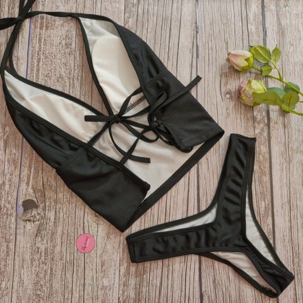 Bikini top con less en v negro - talle 85