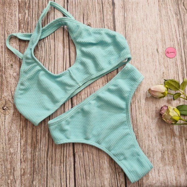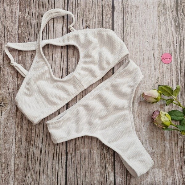 Bikini texturada top con less tiro alto - talle 90